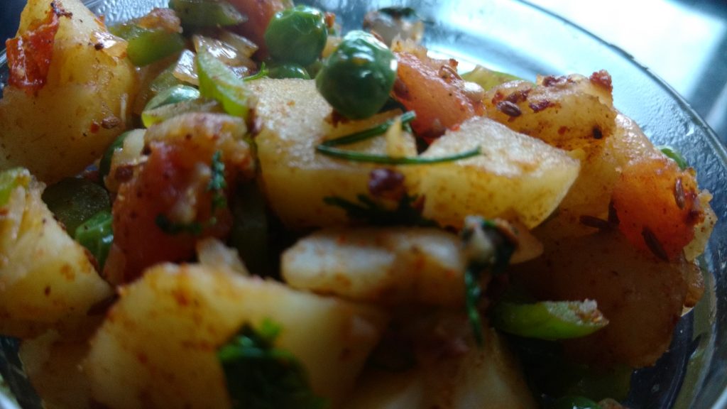 In our routine diet we need some variety so that we do not get fed up with the same taste. Here is a sabji recipe using capsicum and peas that goes well with roti/paratha/rice.