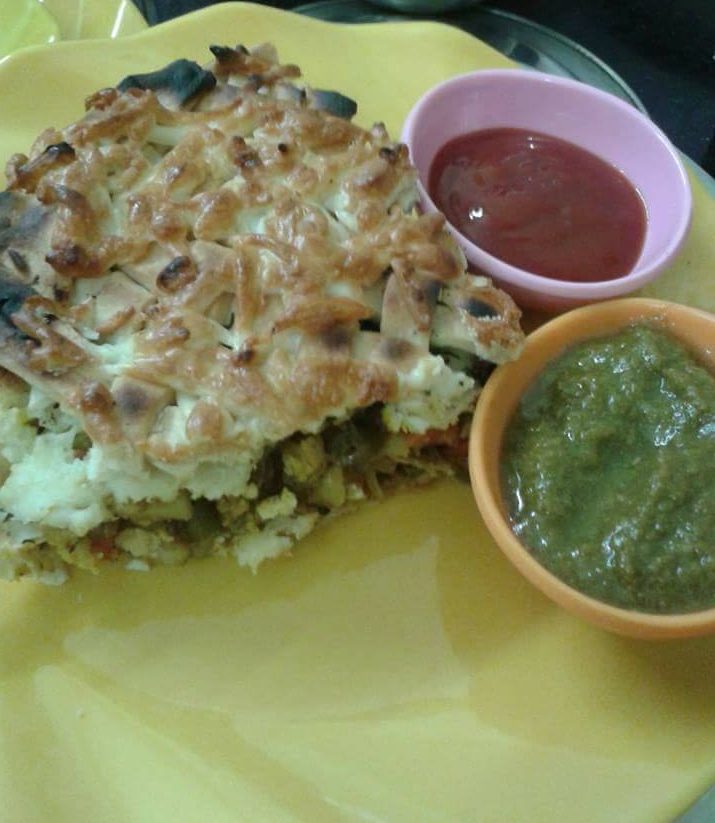 - Our Mixed Veg Paneer Pie is ready to serve with sauce and dip.