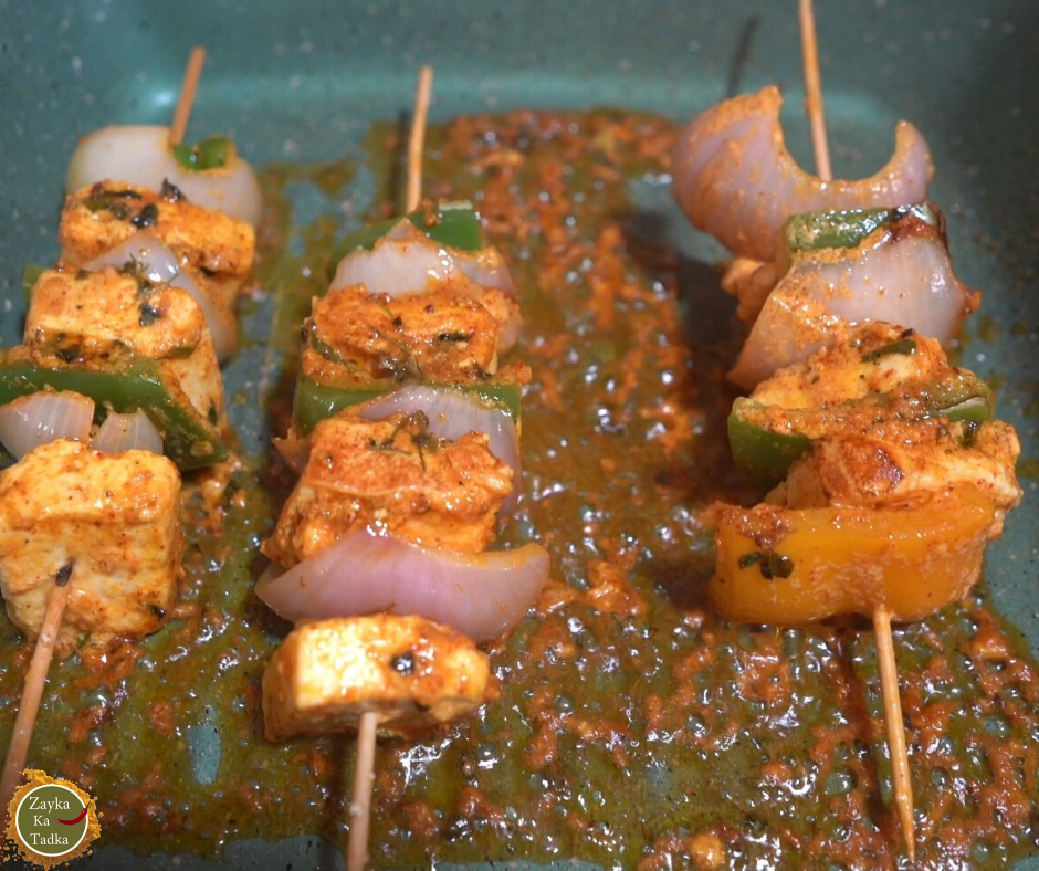 - Marinate the paneer, onion and capsicum for at least 30 minutes. You can keep the marinated ingredients in the refrigerator for one day.